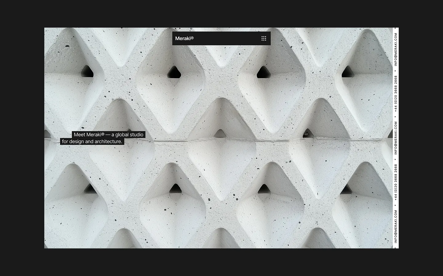 A sleek Webflow template inspired by world-renowned studios such as Foster & Partners — crafted to highlight architectural work with clarity, impact, and modern elegance. This is Meraki, a template made for design and architecture.